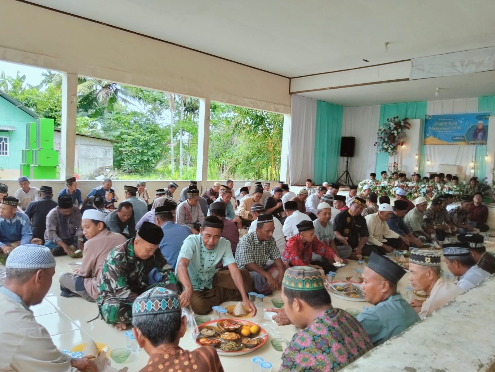 JURNAL POLRI.COM-ACEH TAMIANG-ACEH-Dekatkan diri dengan para Ulama Peltu Yohanes Sinabang Batuud Koramil 09/Banda Mulia menghadiri acara peringatan Maulid Nabi Besar Muhammad SAW, yang di laksanakan di Kantor Datuk Penghulu Desa Suka Damai, Kecamatan Banda Mulia, Kabupaten Aceh Tamiang. Selasa (24/09/2024)