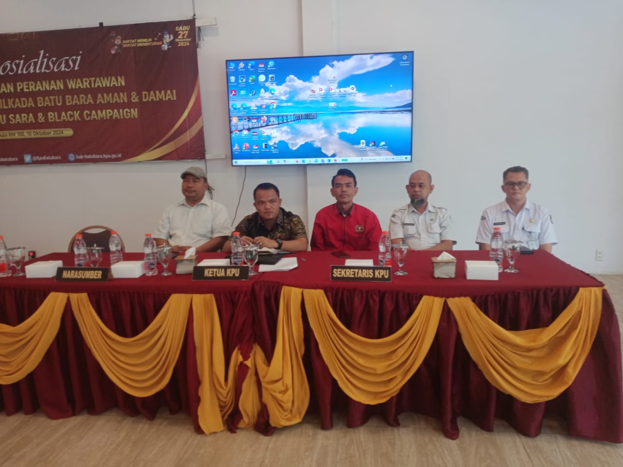 Jurnalpolri.com Batu.Bara Provinsi Sumatra UtaraPelak sana Kegiatan KPU Batu Bara dalam rangka Memaksimalkan Peranan Wartawan dalam mewujudkan Pilkada Batu Bara Aman & Damai Tampa Hoax Isu Sara &BLACKCAMPAIGN tepat nya di Aula RM 100Jalan Besar Lensum pada Hari Kamis 11.Oktober2024 tepat nya 10 wib S/d Selesai.