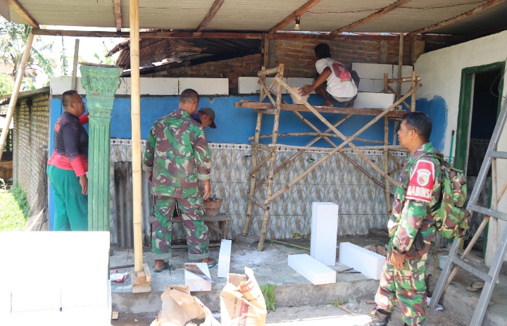 Agar Lebih Khusyuk Beribadah, Satgas TMMD Ke 122 Kodim 0809/Kediri Juga Renovasi Musholla