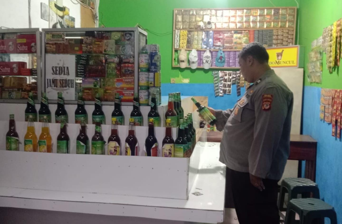 “Kami sampaikan himbauan pada toko-toko penjual jamu untuk membantu kami menjaga kondusifitas keamanan wilayah, dengan tidak menjual minuman keras jenis apapun, termasuk miras oplosan. Sebab, akibat dari miras ataupun miras oplosan bisa menjadi awal penyebab keributan atau tindak kejahatan yang mengganggu Kamtibmas.” ujar Aiptu Irwan.