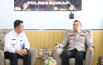 Sidrap, JURNALPOLRI.MY.ID — AKBP Dr. Fantry Taherong, S.H., S.I.K., M.H., Kapolres Sidrap, menerima langsung audiensi Kepala BNK Sidrap, Syahril Said, di ruang kerjanya, Senin (16/6/2025). Pertemuan ini berlangsung hangat, menandai langkah awal kolaborasi strategis antarlembaga dalam menghadapi ancaman narkotika di Bumi Nene Mallomo.