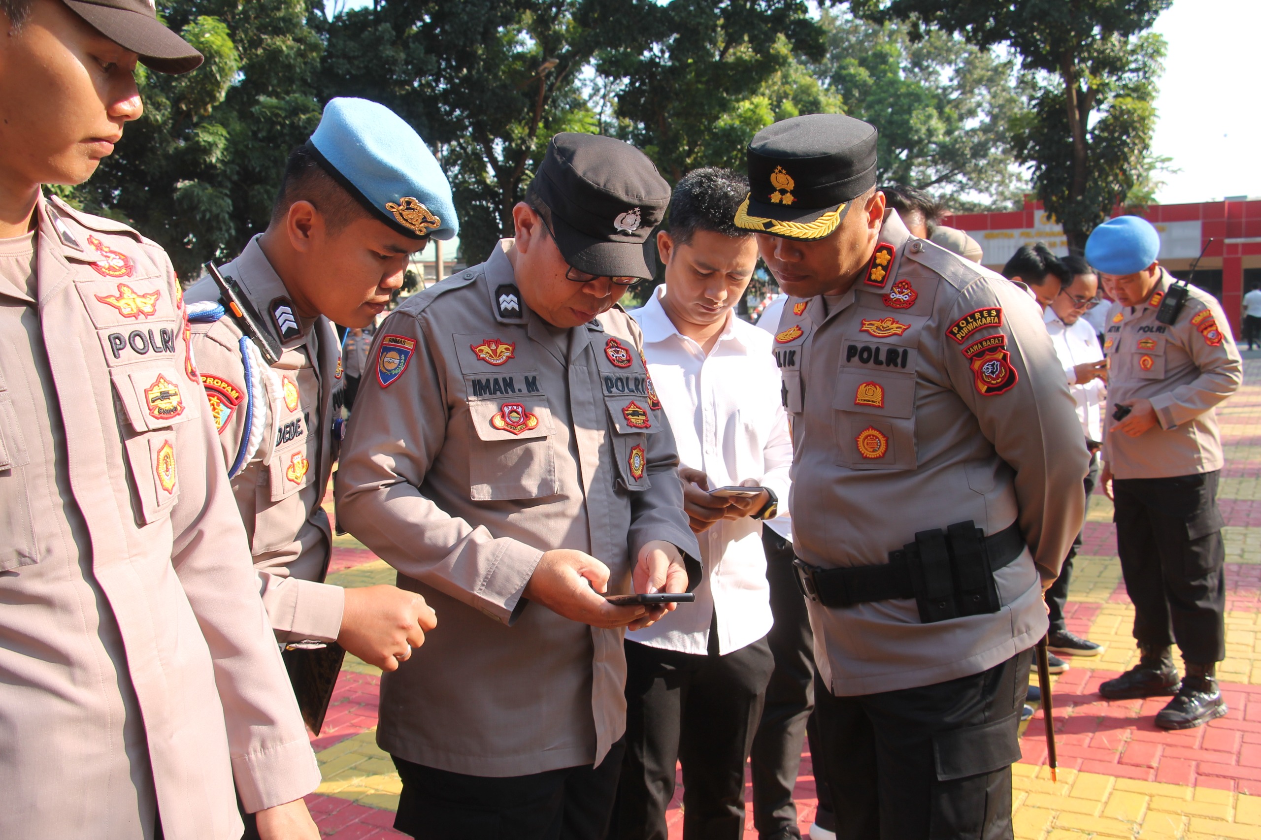 Terlihat, seluruh personel Polres Purwakarta dikumpulkan. Mereka kemudian berbaris dan diminta untuk mengeluarkan ponsel dan satu-satu ponsel milik personel mereka yang di cek langsung AKBP Lilik Ardiansyah.