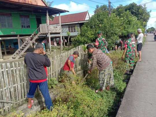 Di tengah mereka, tampak sosok yang tak asing—Danramil 1420-01/Panca Lautang, Lettu Inf. Jumadi, turun langsung memimpin aksi gotong royong.