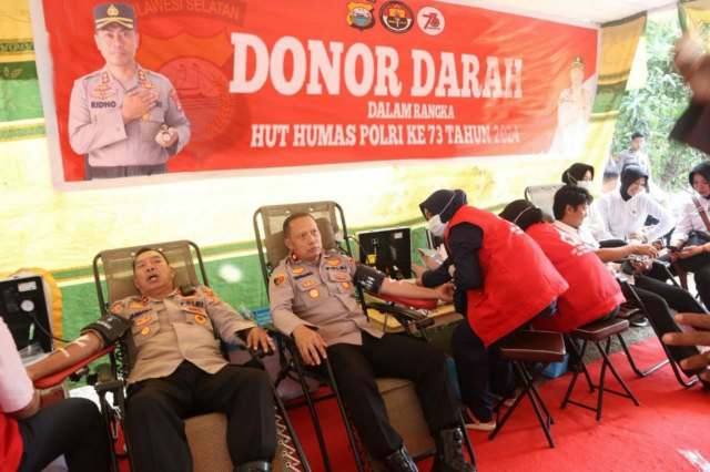 JURNALPOLRI.MY.ID, Wajo – Merayakan Hari Ulang Tahun (HUT) Humas Polri yang ke-73, Polres Wajo menggelar aksi donor darah yang menggerakkan seluruh personel di lingkungan Polres.