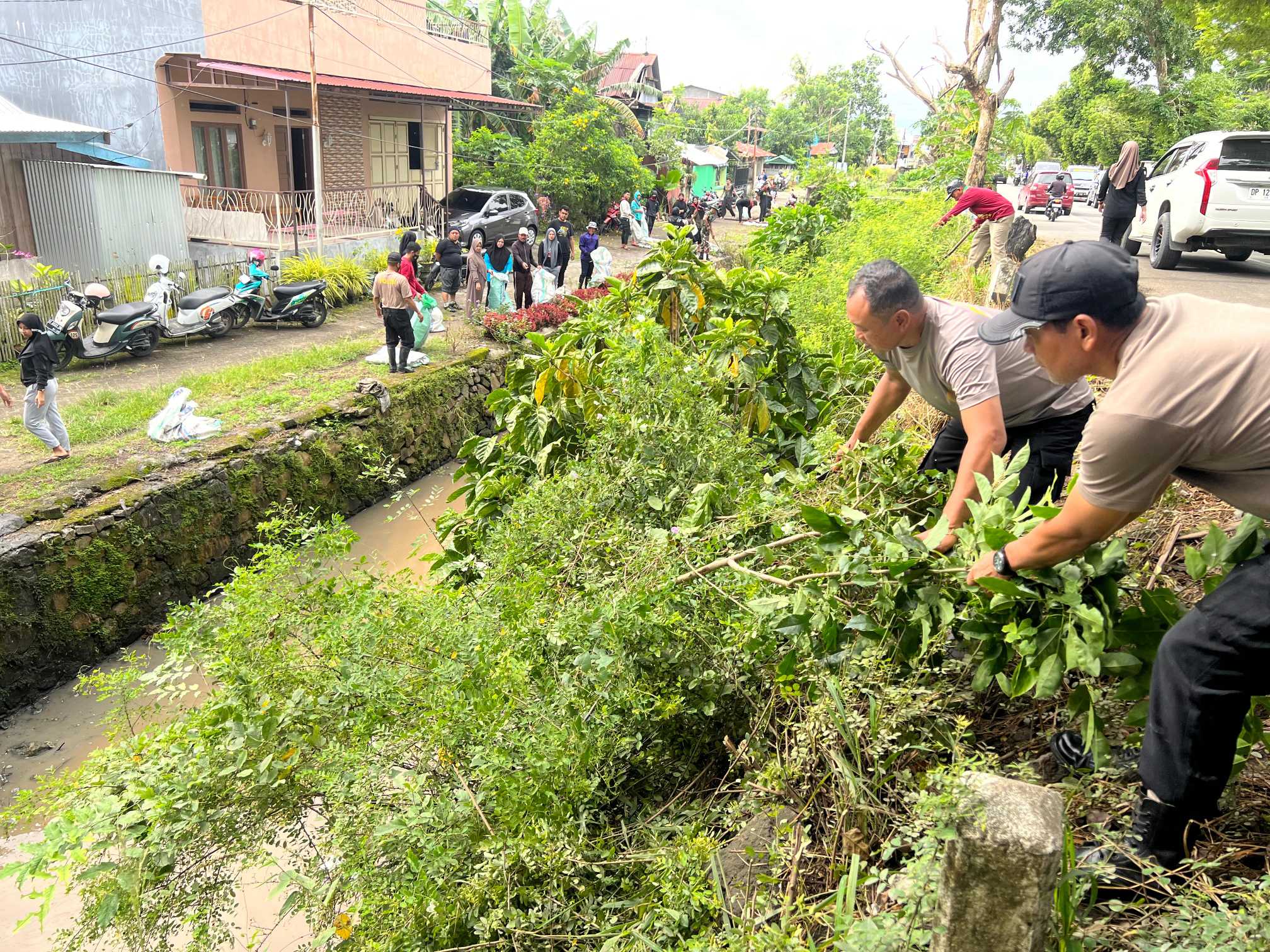Personel dari Polres Sidrap, Kodim, serta jajaran Pemerintah Daerah turun langsung ke lapangan bersama warga, bergotong royong membersihkan saluran air yang tersumbat oleh sampah dan rumput liar.