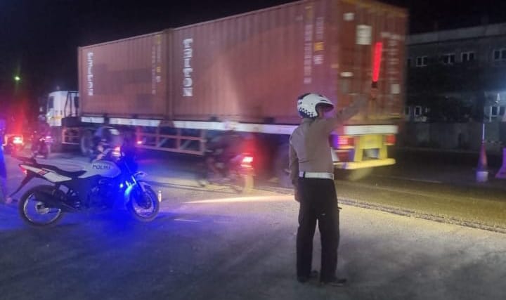 Anggota Lantas Polsek Jatisari Lakukan Pengaturan Arus Lalin Saat Kegiatan Perbaikan Jalan Malam Hari