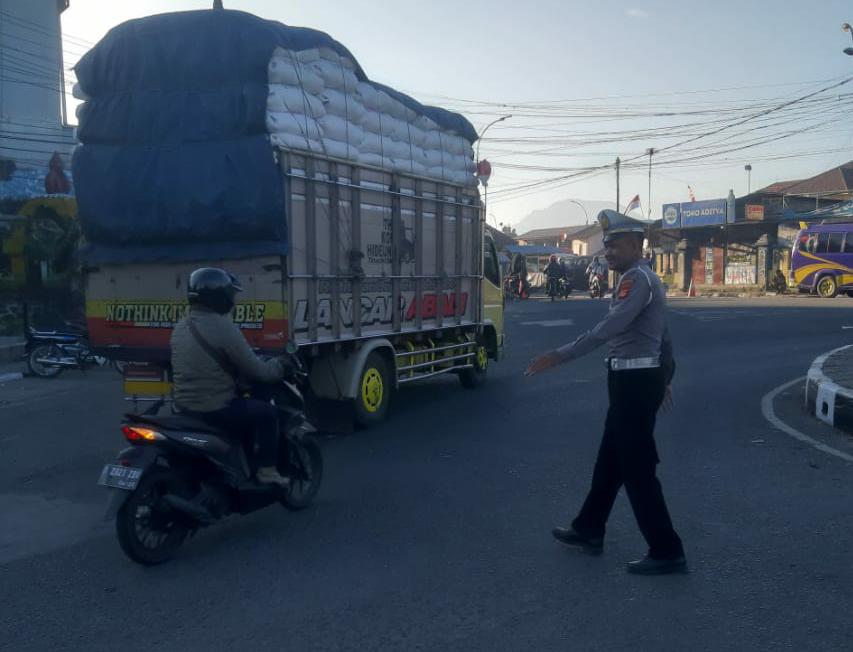 Anggota Lantas Polsek Pangalengan Laksanakan Rutinitas Pengaturan Lalu Lintas