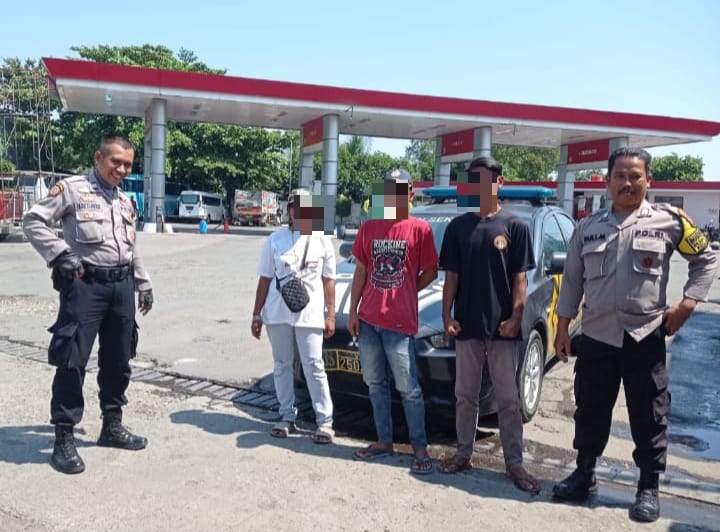 Anggota Patroli Polsek Jatisari Berikan Himbauan Kamtibmas Ke Juru Parkir Depan SPBU