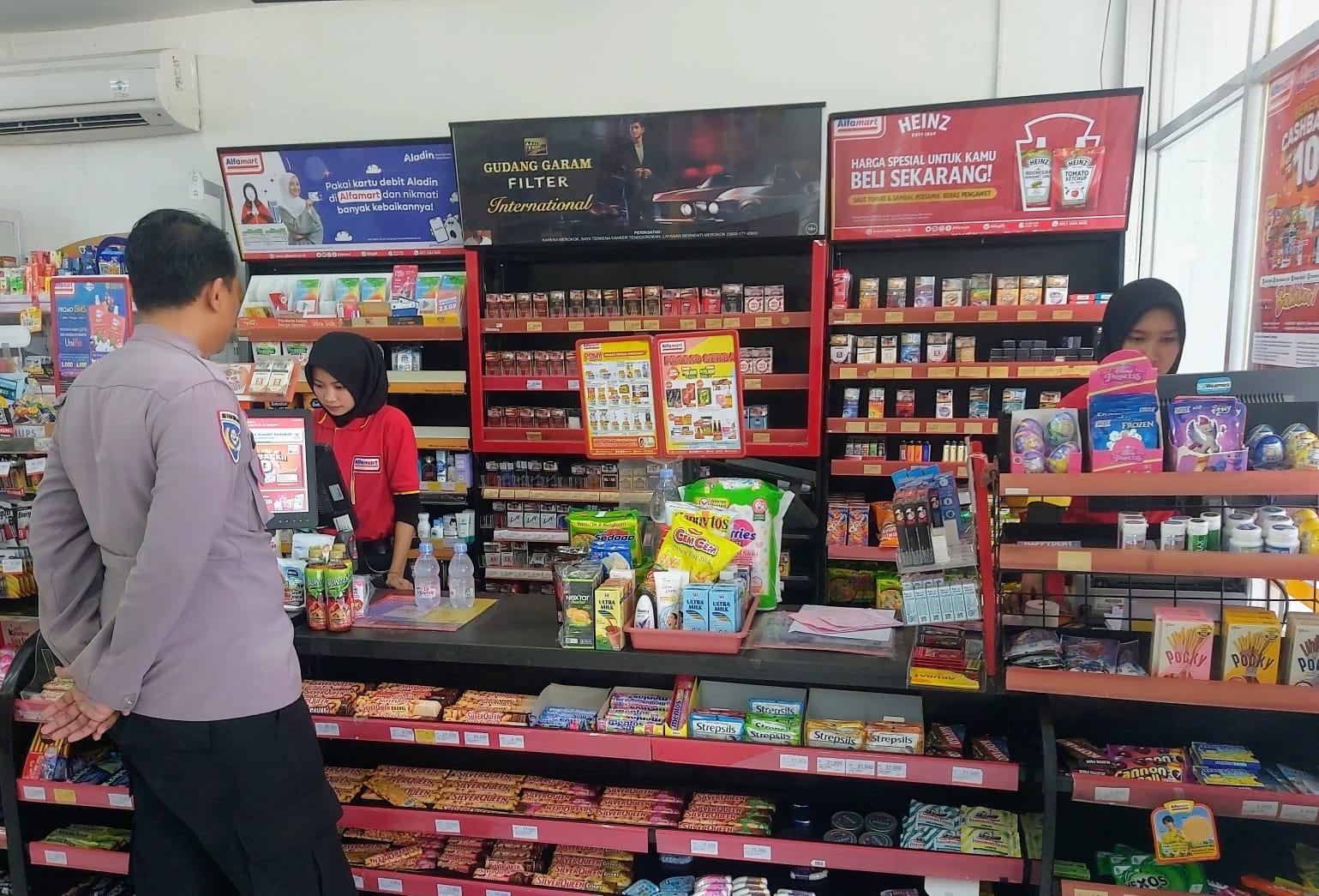 Pada pelaksanaan kegiatan Patroli Prekat, Anggota Polsek Tirtajaya Kontrol situasi keamanan dan Kondusifitas di Minimarket Desa Bolang kecamatan Tirtajaya Kabupaten Karawang.