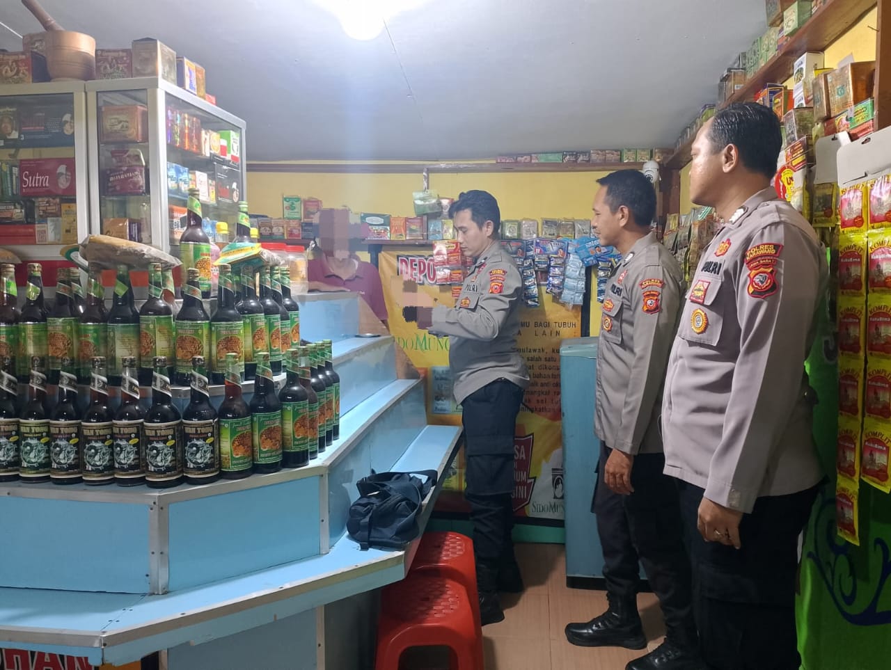 Pelaksanaan kegiatan Ops tersebut, Anggota Polsek Tirtajaya mendatangi Toko-toko jamu yang diduga menjual Miras ataupun Miras Oplosan yang berlokasi di Desa Bolang Kecamatan Tirtajaya Kabupaten Karawang.