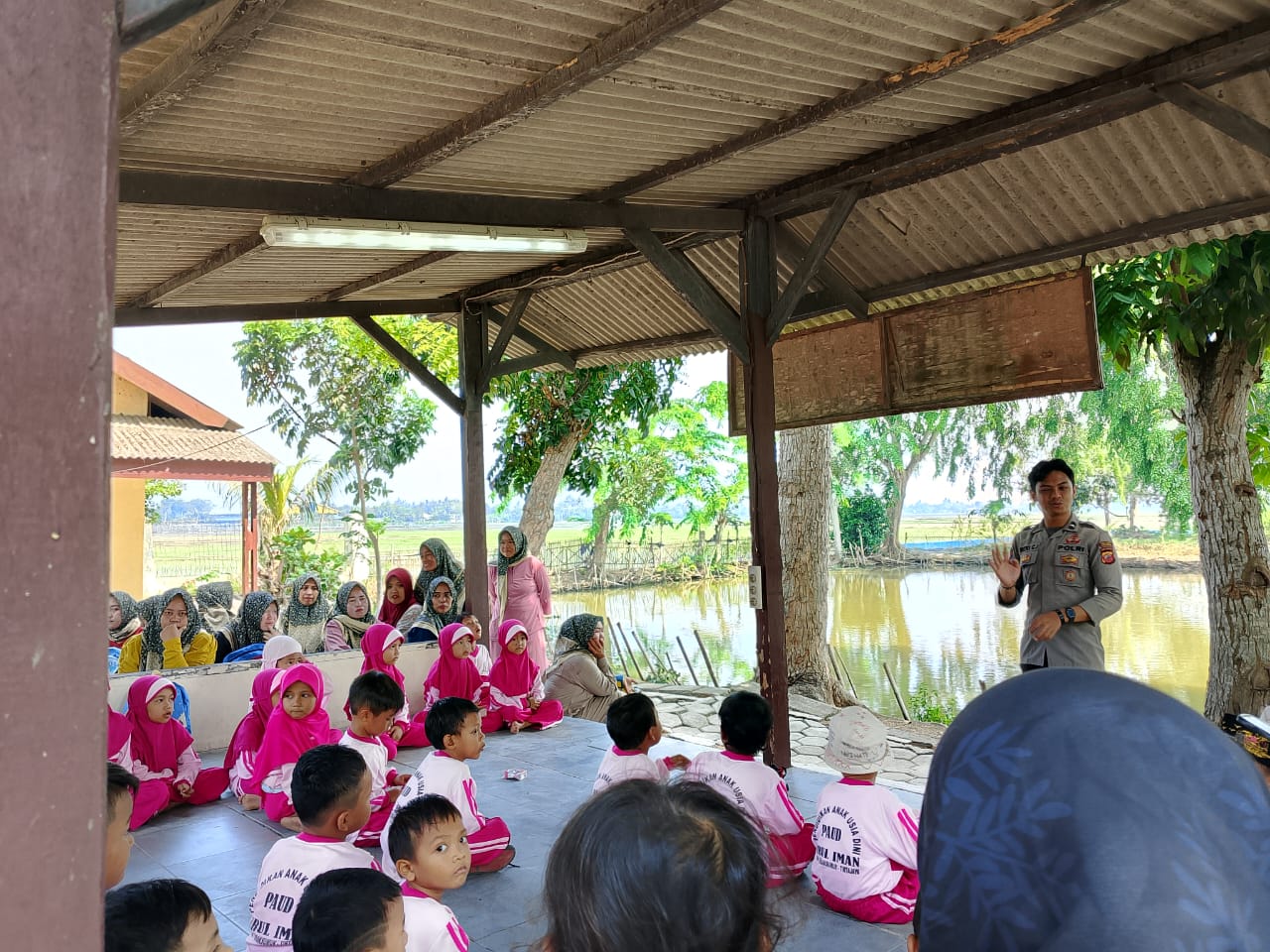 Selama kegiatan berlangsung Bripda Rizki Chaerul Insan Anggota Polsek Tirtajaya Polres Karawang Polda Jabar memberikan Arahan dan Pembinaan kepada Siswa/Siswi Paud Nurul Iman Desa Tambaksumur serta menjelaskan tugas-tugas sebagai anggota Polri.