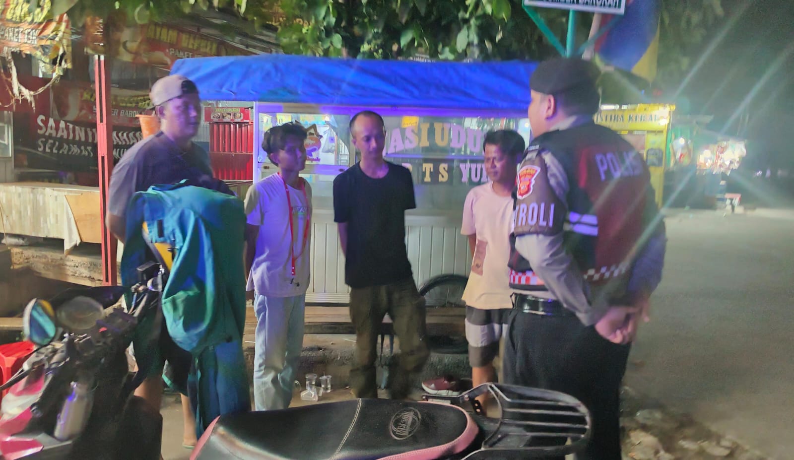 Anggota Sat Samapta Polres Karawang Sambangi Masyarakat Sekitar Klari pada Malam Hari, pada Sambangnya Anggota Sat Samapta Polres Karawang menyampaikan himbauan Kamtibmas kepada Masyarakat tersebut.