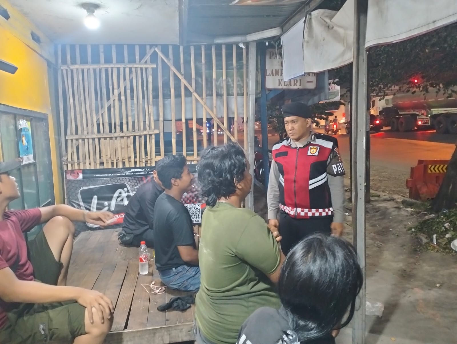 Anggota Sat Samapta Polres Karawang Sambangi Masyarakat Sekitar Tanjungpura pada Malam Hari, pada Sambangnya Anggota Sat Samapta Polres Karawang menyampaikan himbauan Kamtibmas kepada Masyarakat tersebut.