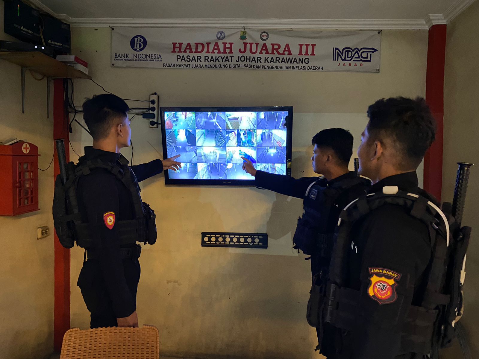 Anggota Sat Samapta Polres Karawang Polda Jabar Tingkatkan keamanan di pasar johar Karawang