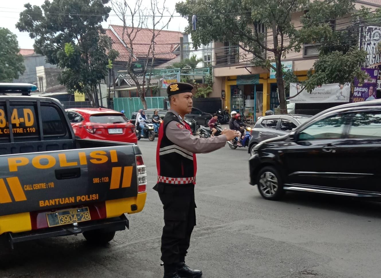 Antisipasi Kemacetan Pagi Hari, QR Unit Samapta Polsek Antapani Lakukan Pengaturan.