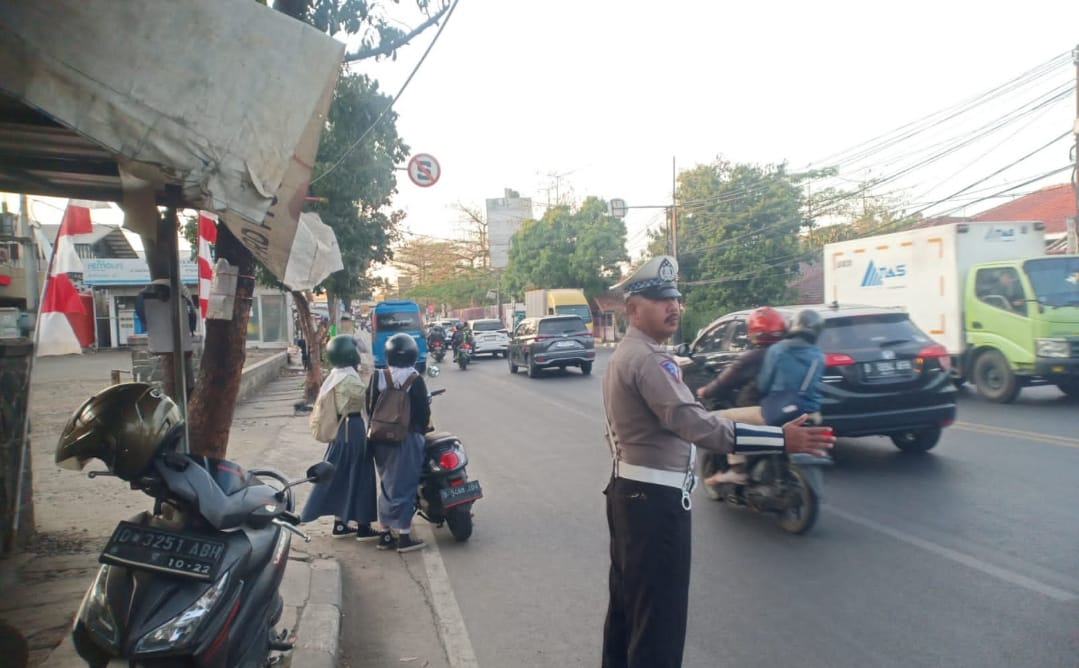 Antisipasi Kemacetan pagi Personil Lantas Polsek Ujungberung Melaksanakan Pengaturan Arus Lalin