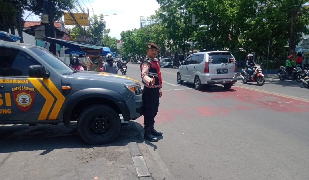 Antisipasi Kemacetan sore hari Personil Samapta Polsek Ujungberung Melaksanakan Pengaturan Arus Lalin