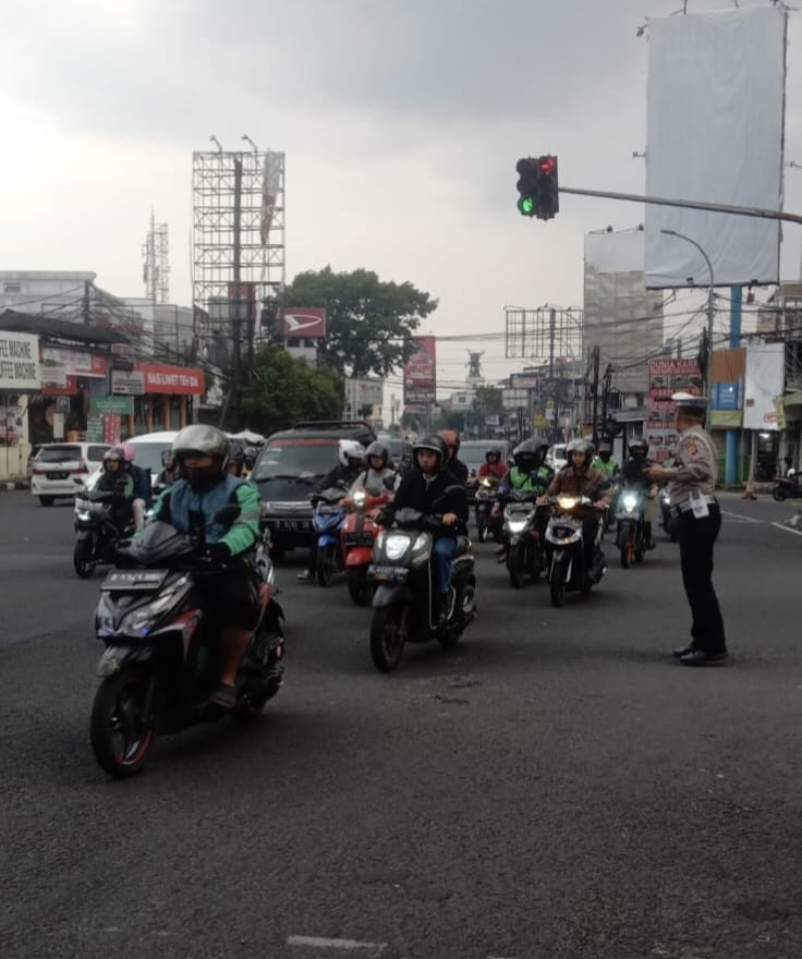 Antisipasi Kemacetan Sore Hari Personil Unit Lalulintas Polsek Sukasari Melaksanakan Pengamanan Jalur.