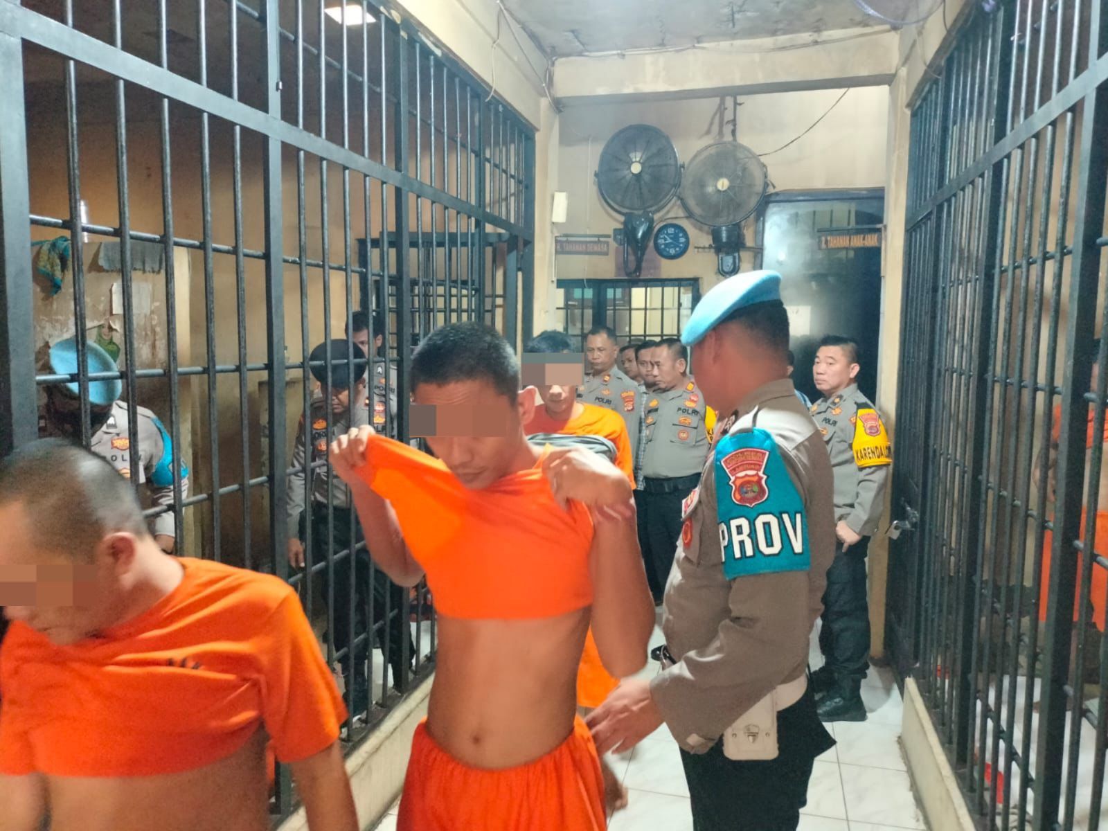Dalam pengecekan ini, petugas memeriksa setiap sel tahanan serta barang-barang yang ada di dalamnya.