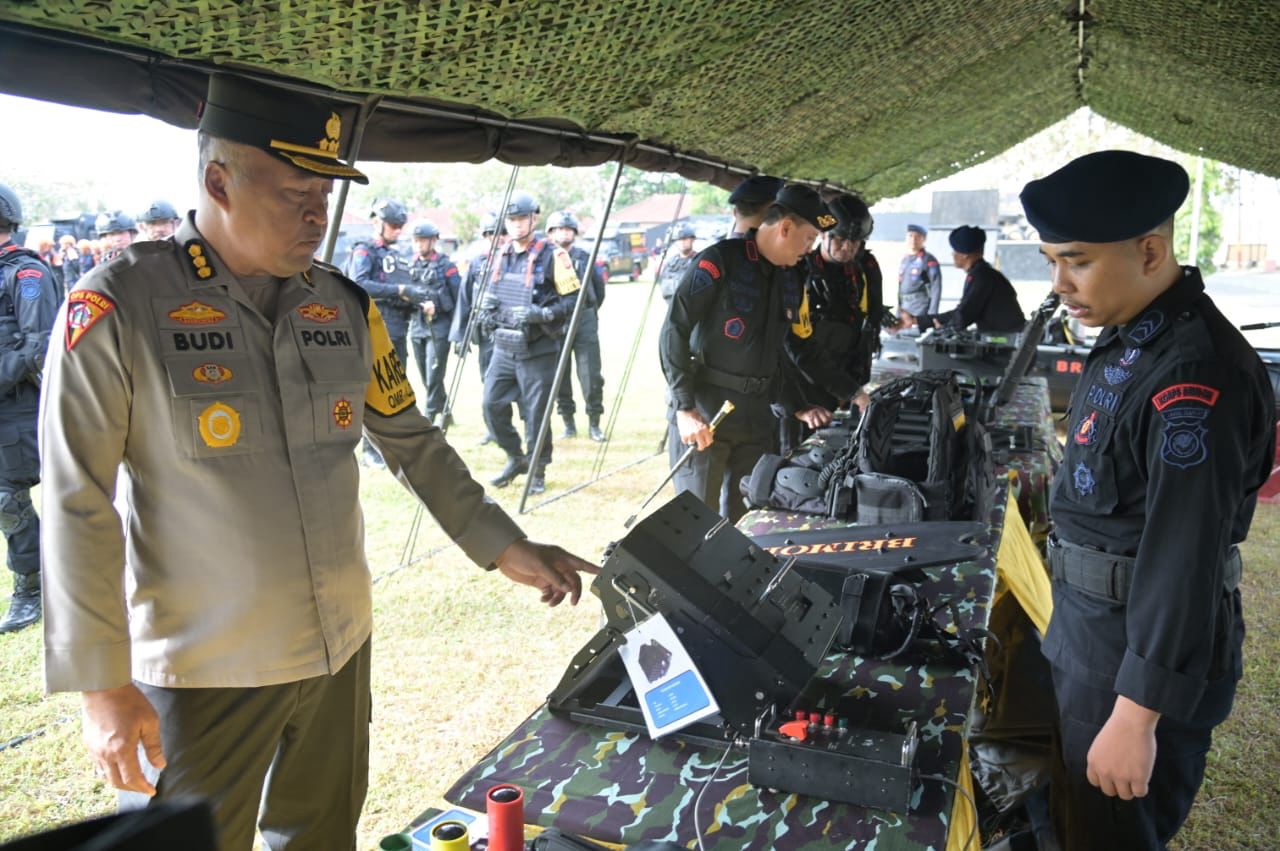 JP, Karo Ops Polda Jabar Kombes Pol Drs. Budi Wasono, SIK., MH didampingi Dansat Brimob Polda Jabar memimpin Apel Gelar Pasukan dan Peralatan Operasi Mantap Praja 2024 Jajaran Sat Brimobda Jabar, bertempat di Lapangan Upacara Sat Brimob Polda Jabar, Kamis (5/9/2024)