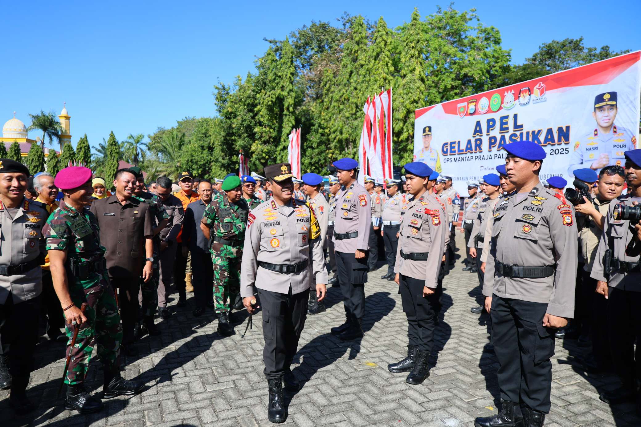 Apel ini dihadiri oleh Pangdam XIV Hasanuddin Mayjen TNI Bobby Rinal Makmun, S.I.P., Panglima Divisi Infanteri 3 Kostrad Mayjen TNI Bangun Nowoko, dan Kasdam XIV Hasanuddin Brigjend TNI M. Syech Ismed, S.E., M.Han., bersama para pejabat utama Polda Sulsel dan personel gabungan dari berbagai instansi terkait.
