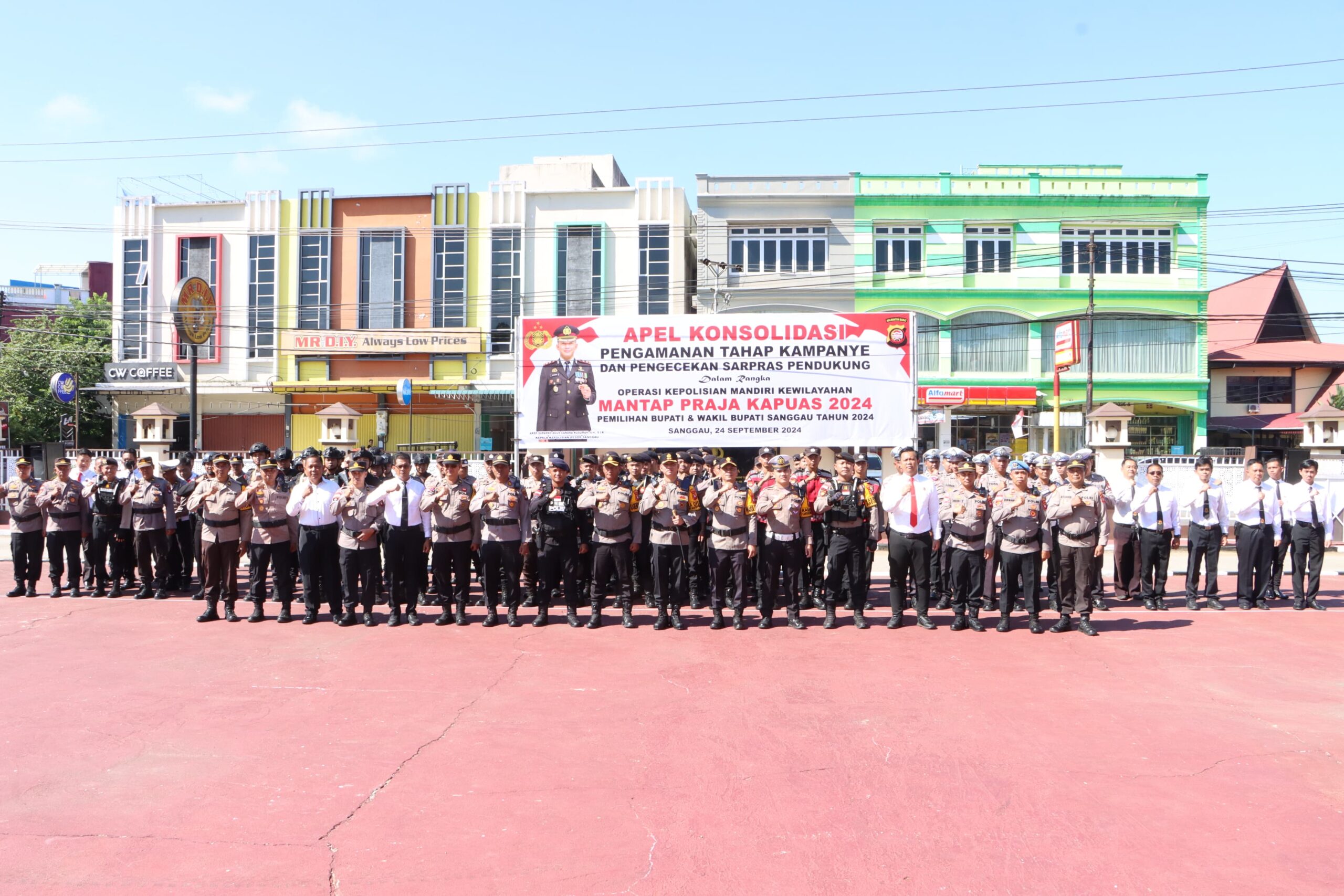 Kegiatan apel konsolidasi pengamanan tahap kampanye dan pengecekan sarpas pendukung dalam rangka operasi kepolisian mandiri kewilayahan mantap praja Kapuas 2024″ pemilihan bupati dan wakil Bupati Sanggau Bertempat Di Halaman polres Sanggau Selasa,(24/9/2024)pagi.