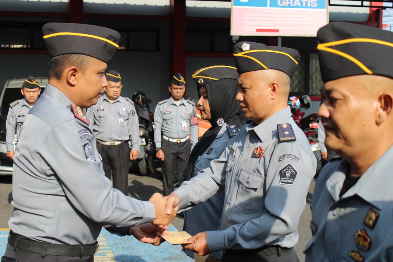 Apel Pagi Di Lapas Kelas IIB Majalengka Sekaligus Penyematan Tanda Kenaikan Pangkat Pegawai