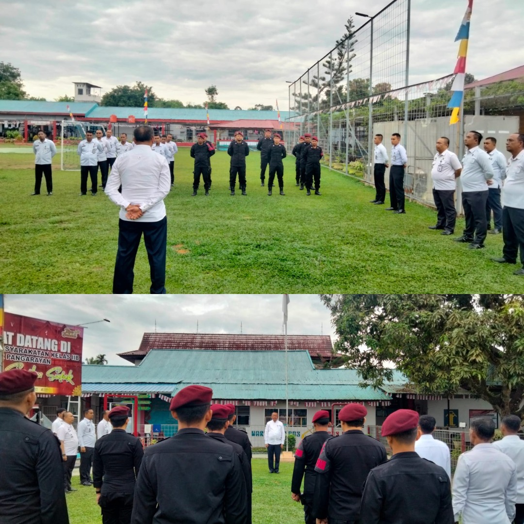 JP. PASIR PENGARAIAN – Kepala Lembaga Pemasyarakatan (Lapas) Kelas II B Pasir Pengaraian Bahtiar Sitepu berikan penguatan kepada jajaran pada Apel Pagi Rabu (28/8/2024).