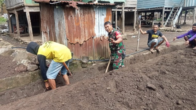 Babinsa Bareng Mahasiswa Unhas Bongkar Drainase di Lainungan