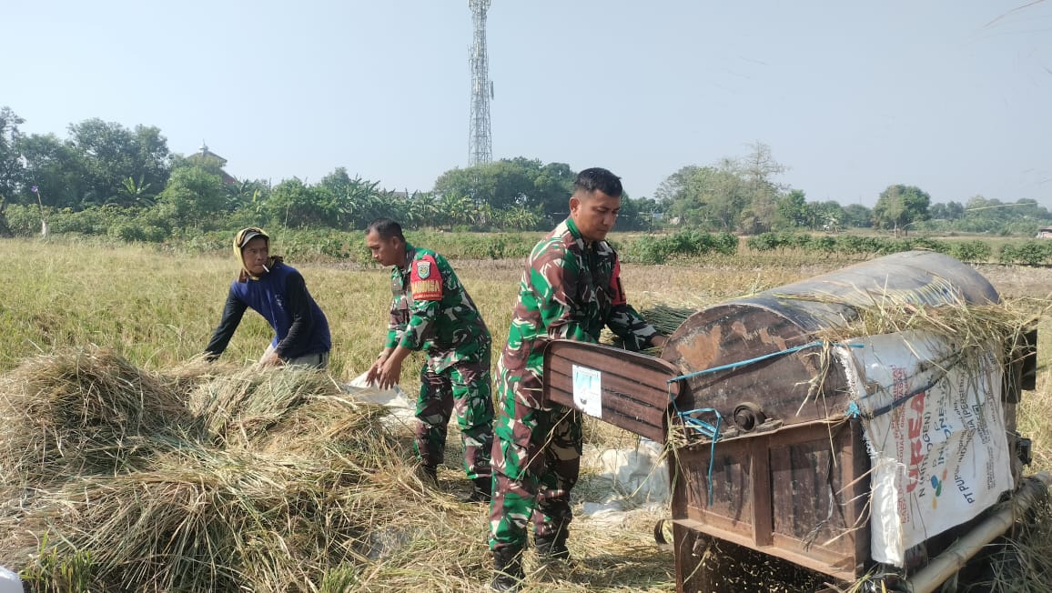 “Kami sengaja ikut turun kelapangan, berharap bisa membantu petani dalam melaksanakan panen padi saat ini.”tutur Serda Asep.”