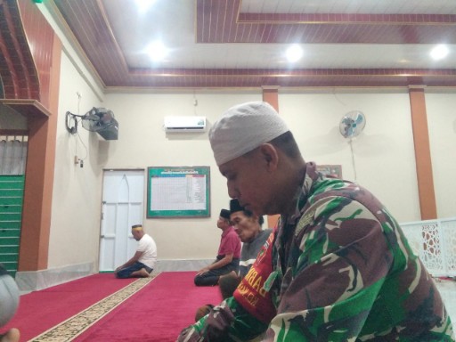 Usai salat, suasana masjid berubah menjadi forum mini. Para Babinsa tidak buru-buru pulang. Mereka duduk bersila bersama tokoh agama dan warga sekitar, membuka ruang komunikasi sosial (Komsos) yang hangat dan terbuka.