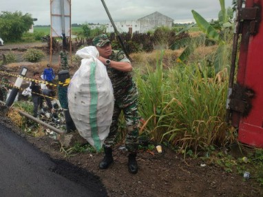 Babinsa Koramil 03/Maritengngae angkat sampah selamatkan saluran air Mojong.
