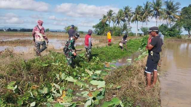 “Saluran irigasi sebagai penyedia bahan baku air pertanian harus dijaga kelancarannya, sehingga sektor pertanian mampu panen dengan baik untuk mendongkrak kesejahteraan para petani,” ujar Serda Suanto Libu.