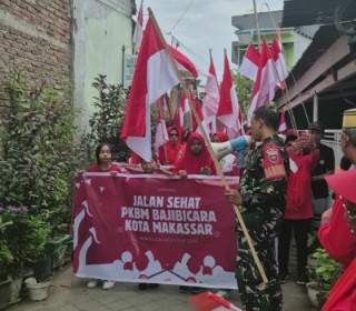 Babinsa Koramil 09/Tamalate kawal jalan sehat HUT RI ke-80 bersama warga Tamalate Makassar.