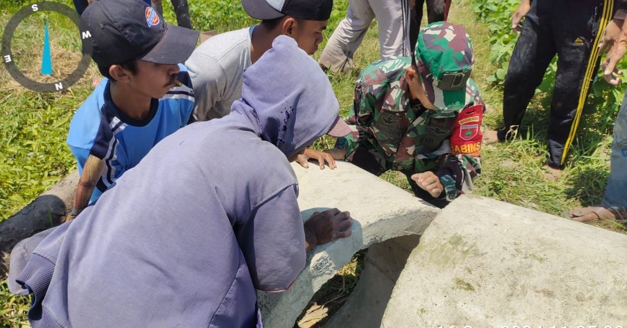 TAKALAR – Sebagai wujud kemanunggalan TNI dan Rakyat, Babinsa Koramil 1426-04/Galesong Kodim 1426/Takalar Serma Syamsuddin membantu petani dalam pemasangan gorong-gorong saluran irigasi di tengah areal pertanian di Desa Sawakong Kecamatan Galesong Selatan Kabupaten Takalar. Senin (16/09/2024).