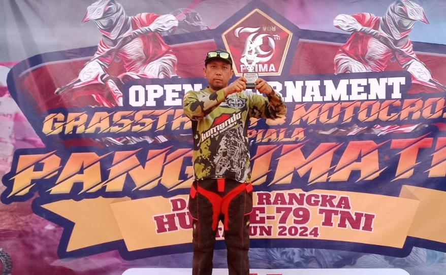 Babinsa Koramil 411-11/TB Kodim 0411/KM Bawa Pulang Piala Juara 5 Kejuaran Open Motocross