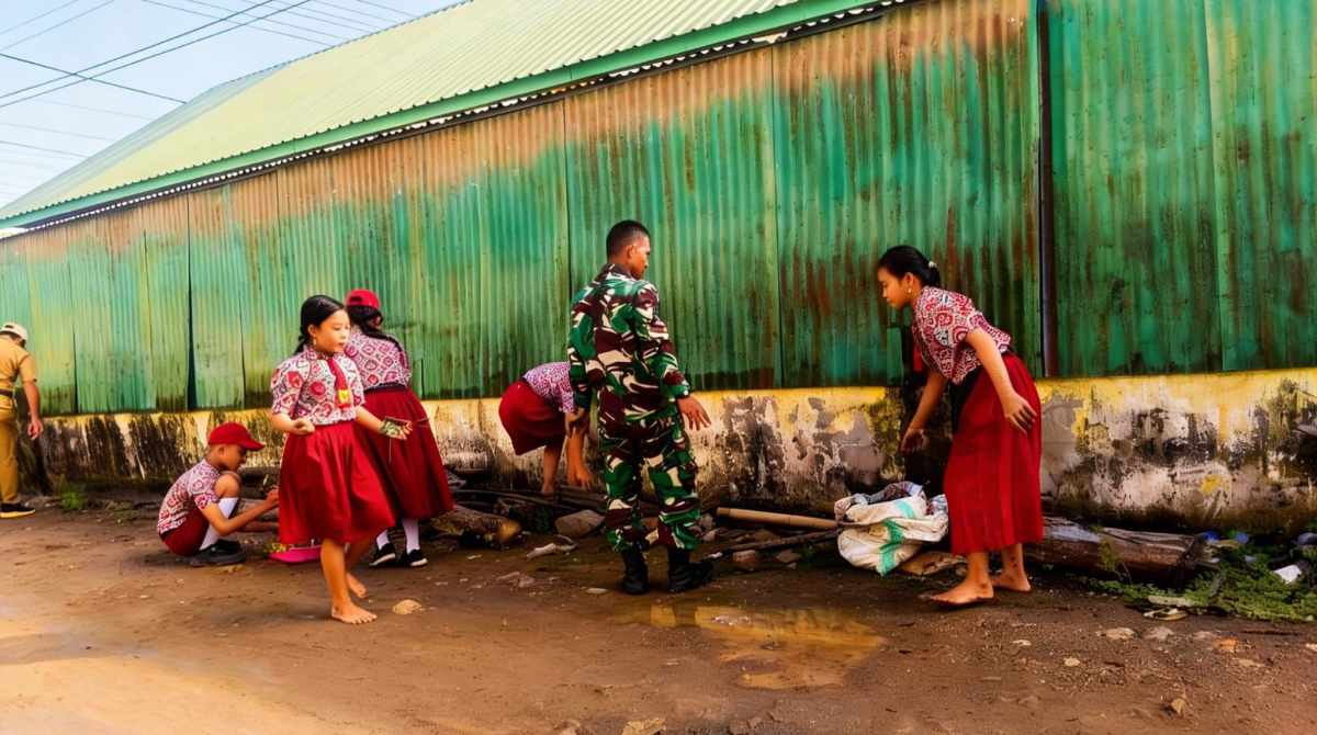 Antusiasme para murid terlihat sangat tinggi. Mereka tampak bersemangat membantu memungut sampah dan membersihkan selokan dengan didampingi langsung oleh Babinsa dan guru pendamping.