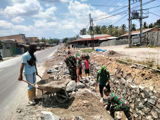 Setiap batu yang di pasang untuk drainase menjadi bukti nyata kehadiran TNI di tengah masyarakat, menjadikan gotong royong sebagai pondasi kokoh dalam menghadapi tantangan lingkungan. (*)