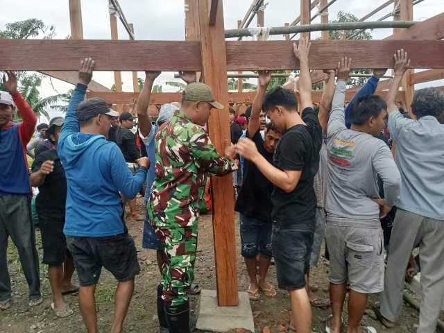 Babinsa Turun Tangan! Gotong Royong Bangun Rumah Warga