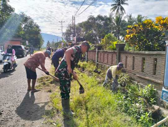 “Saluran ini sudah lama tersumbat. Kalau hujan deras, air sering meluap ke jalan bahkan masuk ke rumah warga,” jelas Serda Irfan di lokasi.
