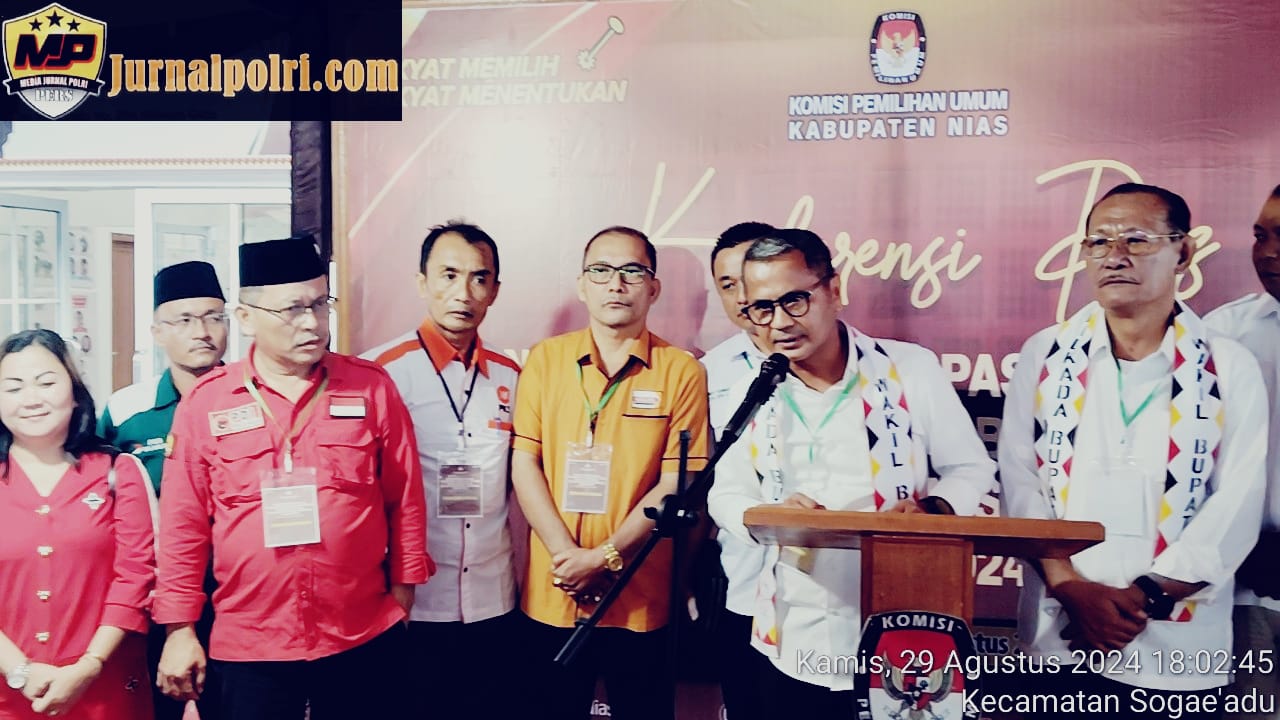 Jurnalpolri.com| Pasangan Bakal Calon, Yaatulo Gulo dan Arota Lase menjadi pasangan bakal calon Bupati dan Wakil Bupati Nias yang mendaftar di Kantor KPU Kabupaten Nias, Kamis (29/8/2024) sore.