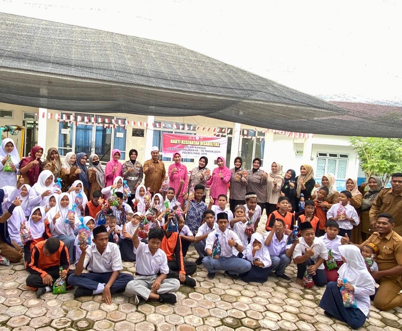 Bakti kesehatan ini merupakan wujud nyata dari komitmen Polwan Polres Pidie Jaya dalam upaya meningkatkan kesejahteraan dan kesehatan bagi 70 siswa SLB Negeri Pidie Jaya.