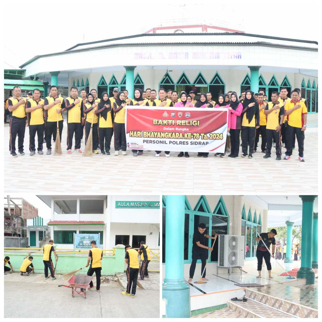 Bakti Religi Di Masjid: Polres Sidrap Rayakan HUT Bhayangkara Ke-78