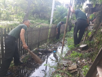 “Kegiatan kerja bakti yang kita kerjakan bersama ini, terutama pembersihan saluran air yang tersumbat sampah guna mengantisipasi banjir yang diakibatkan hujan lebat sekaligus mengantisipasi bersarangnya nyamuk, terutama nyamuk Aedes Aegefti penyebab penyakit demam berdarah,” ucap Pasiter.