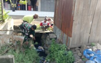 Sidrap, JURNALPOLRI.MY.ID – Batuud Koramil 02/Tellu Limpoe, Pelda Jafar bersama warga setempat melaksanakan karya bakti pembersihan saluran air di sekitar Pasar Sentral Amparita, Kelurahan Toddang Pulu, Kecamatan Tellu Limpoe, Kabupaten Sidrap, Senin (25/08/25)