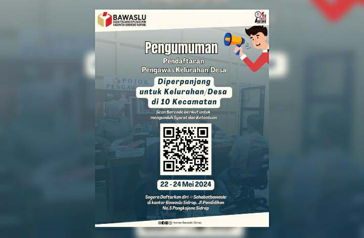 JURNALPOLRI.MY.ID, Sidrap – Badan Pengawas Pemilihan Umum (Bawaslu) Kabupaten Sidrap mengumumkan perpanjangan pendaftaran Pengawas Kelurahan/Desa (PKD) dalam rangka Pilkada serentak. Keputusan ini diambil untuk memastikan kelengkapan dan keberagaman dalam penugasan tersebut.