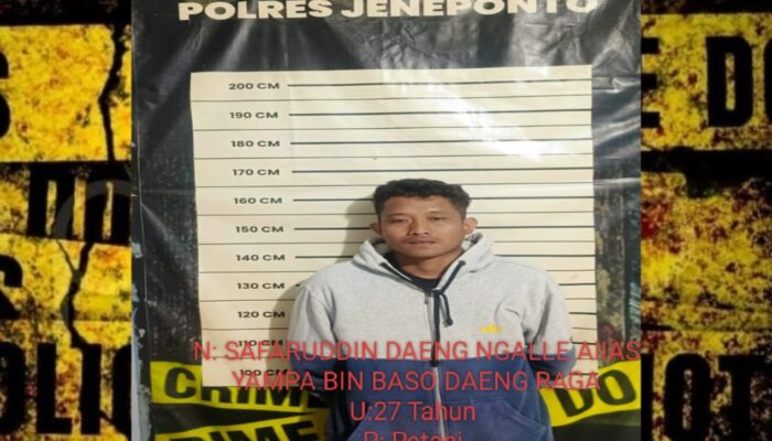 JENEPONTO, 24 APRIL 2026 – Satuan Reserse Kriminal (Satreskrim) Polres Jeneponto menunjukkan kinerja cepat dan tangguh. Tim gabungan berhasil mengungkap kasus pembunuhan yang terjadi di Kecamatan Batang dan menangkap terduga pelaku berinisial SA alias Ampa (27). Penangkapan dilakukan pada Jumat dini hari pukul 01.30 WITA di Dusun Bontoburungeng, Desa Camba-Camba, hanya beberapa jam setelah kejadian.