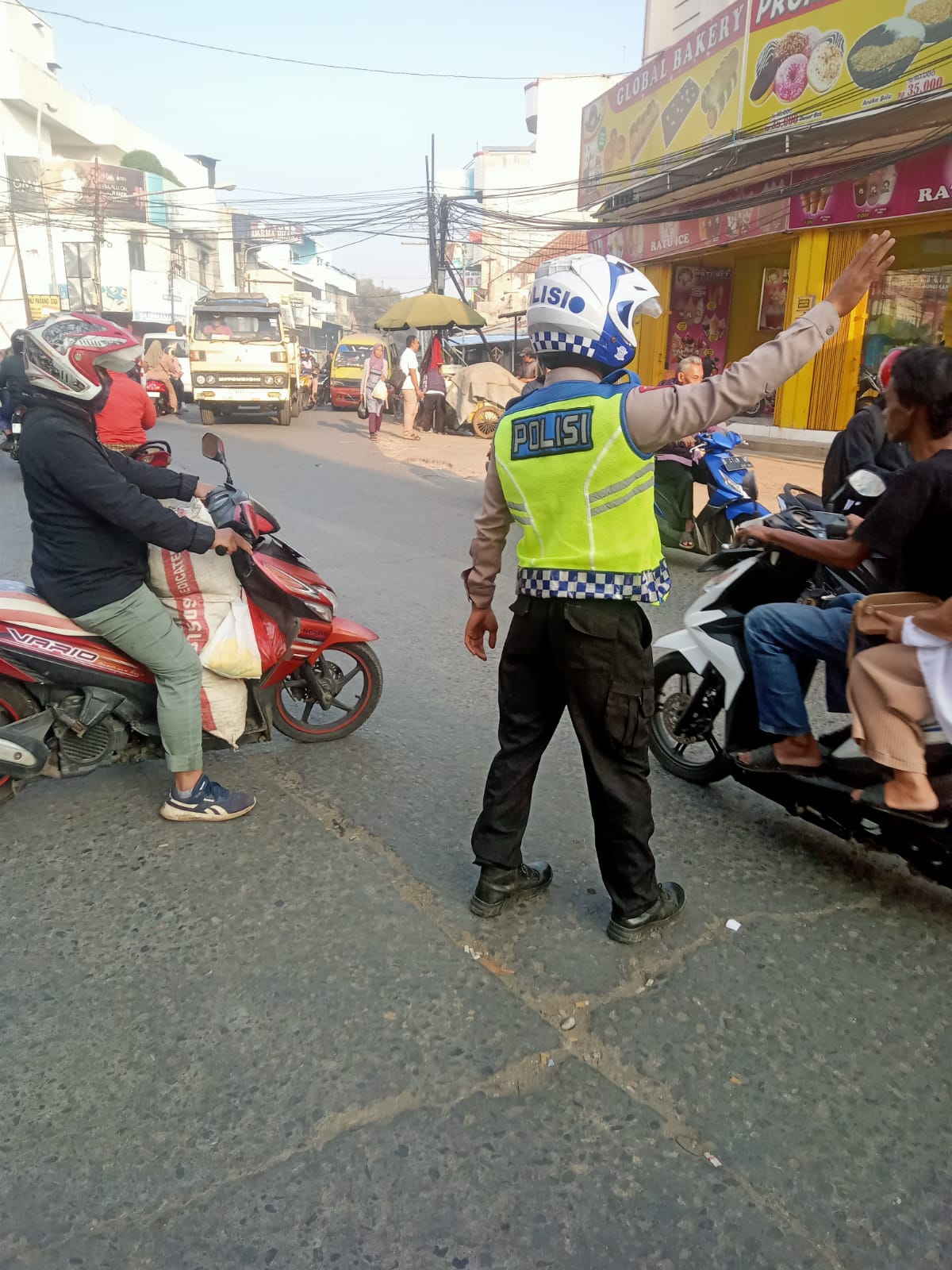 Seperti yang dilakukan anggota Polsek Majalaya melakukan pengaturan arus lalu lintas di wilayah hukum Polsek majalaya guna mencegah kepadatan arus, 15 Agustus 2024