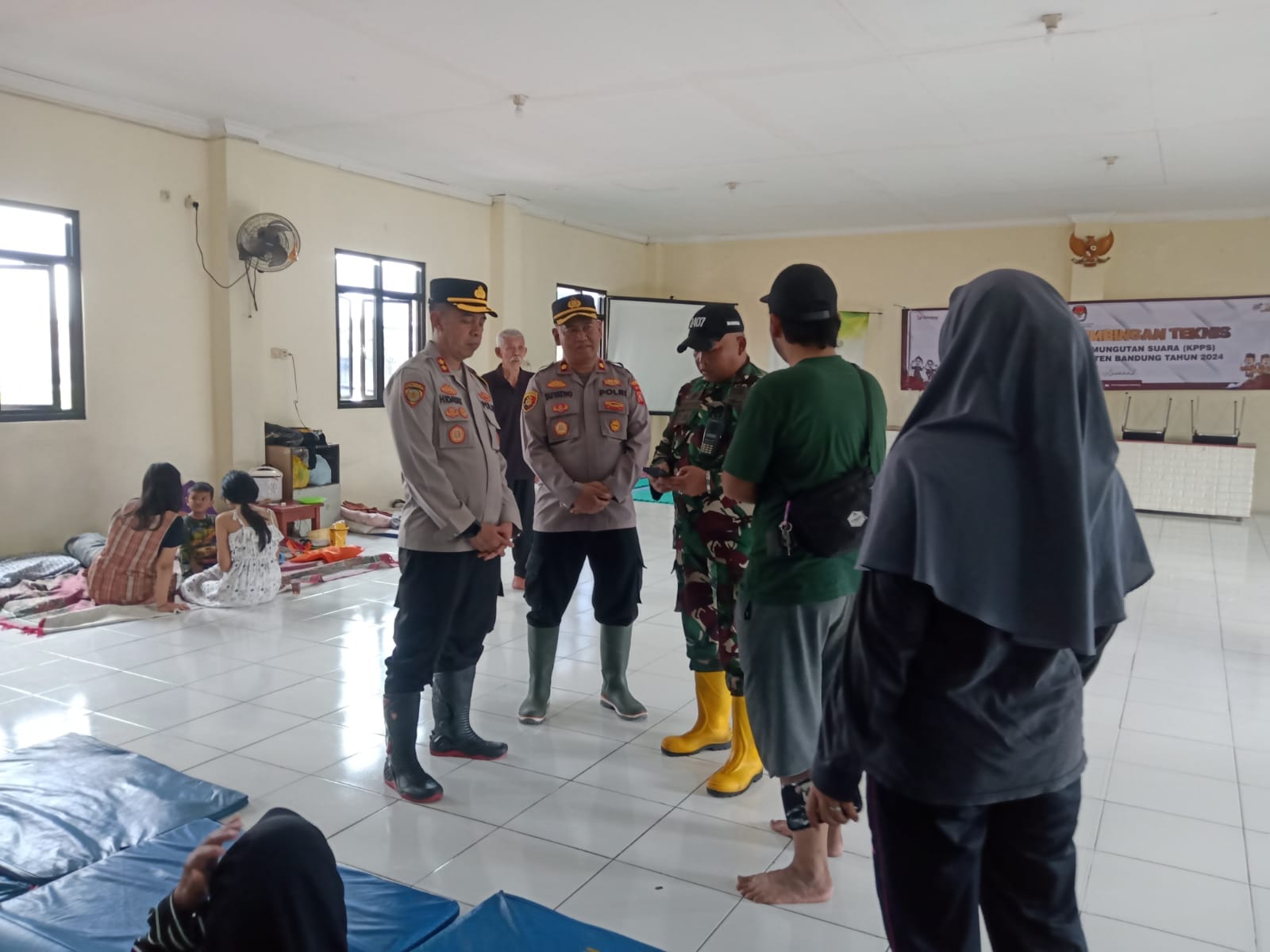 Dalam giat kunjungan tersebut Waka Polresta Bandung mengunjungi pengungsi yang berada dilokasi pengungisan di gedung PMI yang berlokasi di Desa Dayeuhkolot.