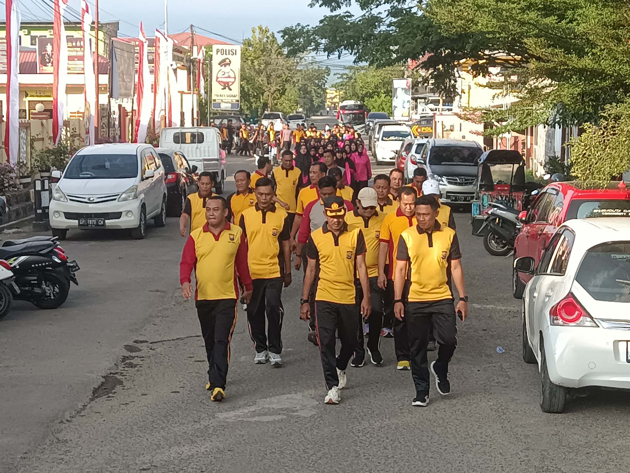 Acara dimulai dengan jalan santai yang menempuh jarak sekitar dua kilometer. Seluruh peserta, mulai dari anggota Polres hingga ASN dan Bhayangkari, mengikuti kegiatan ini dengan antusias. Setelah itu, dilanjutkan dengan senam bersama yang dipimpin oleh instruktur profesional yang energik.